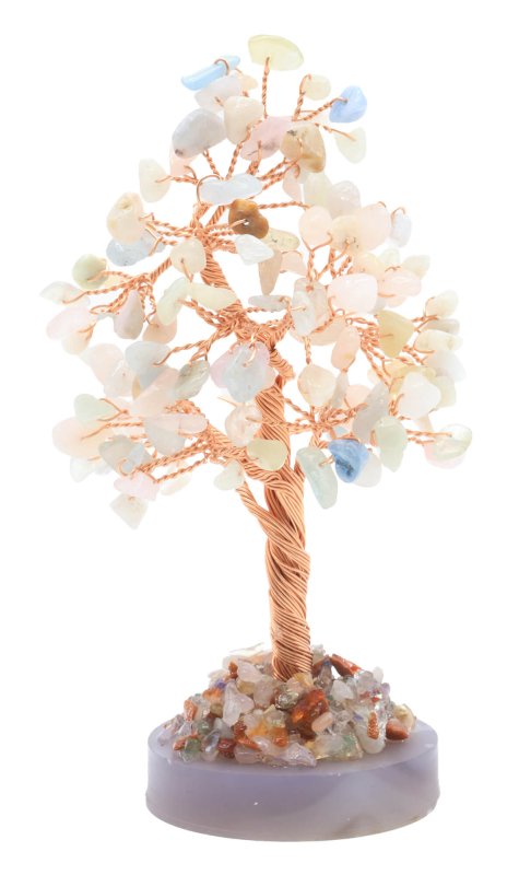 Albero della felicità in rame su base di agata lucida e scaglie di minerale.