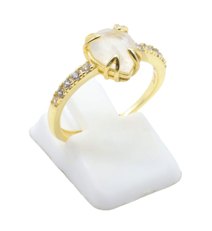 Anello in argento 925 placcato oro con pietra di luna di qualità extra.