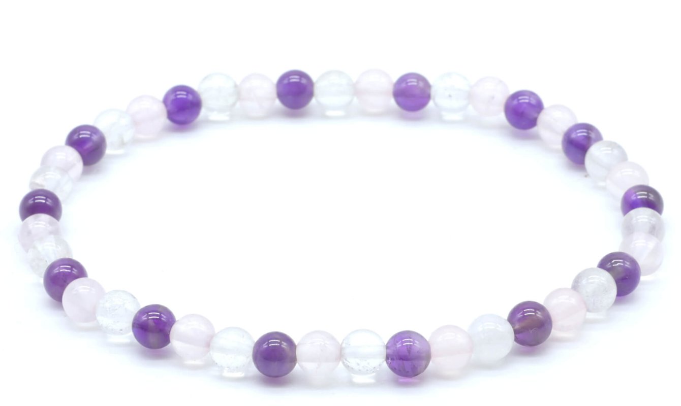 Bracciale Ametista, Cristallo, Quarzo Rosa perle 4mm