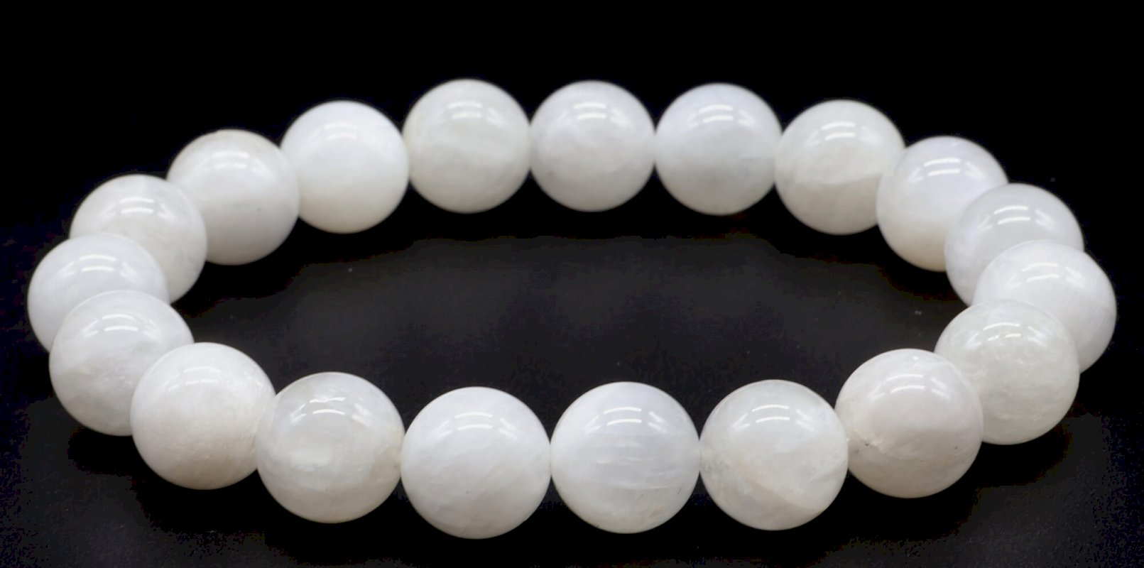 Bracciale in pietra di luna bianca 'AA' perline 10mm