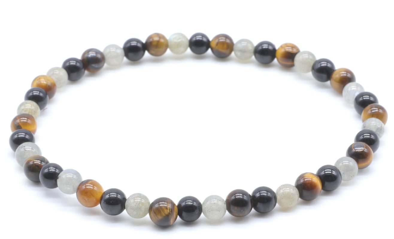 Bracciale labradorite, tormalina nera, perline occhio di tigre 4mm