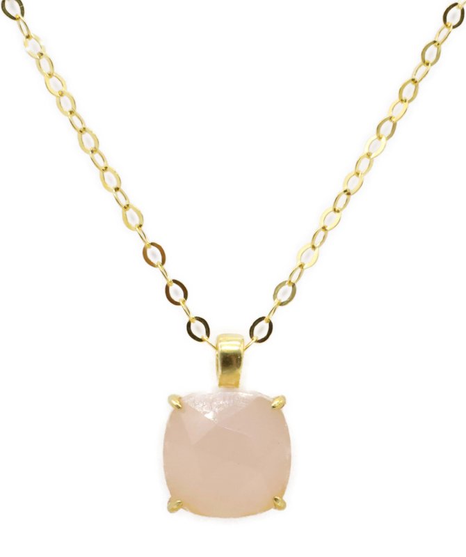 Collana in argento 925 placcato oro con un quarzo rosa di qualità extra.
