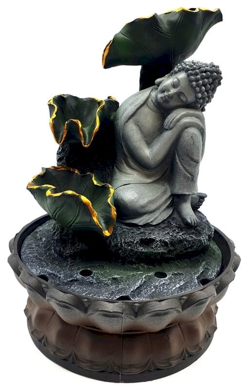 Fontana in Resina Buddha Sdraiato sul Ginocchio & Cascata 28 cm