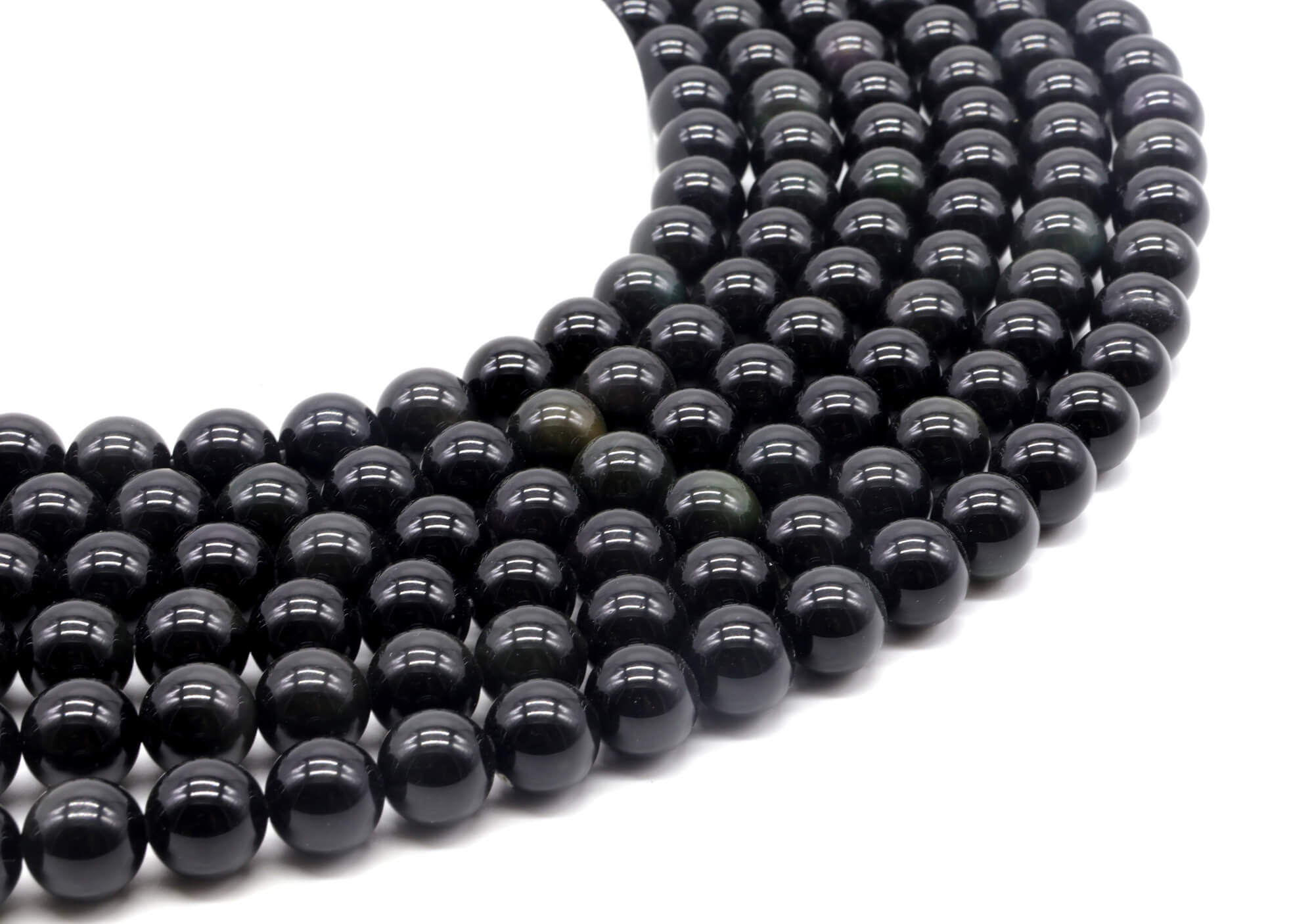 Perle di ossidiana nera dorata 10 mm su un filo di 40 cm
