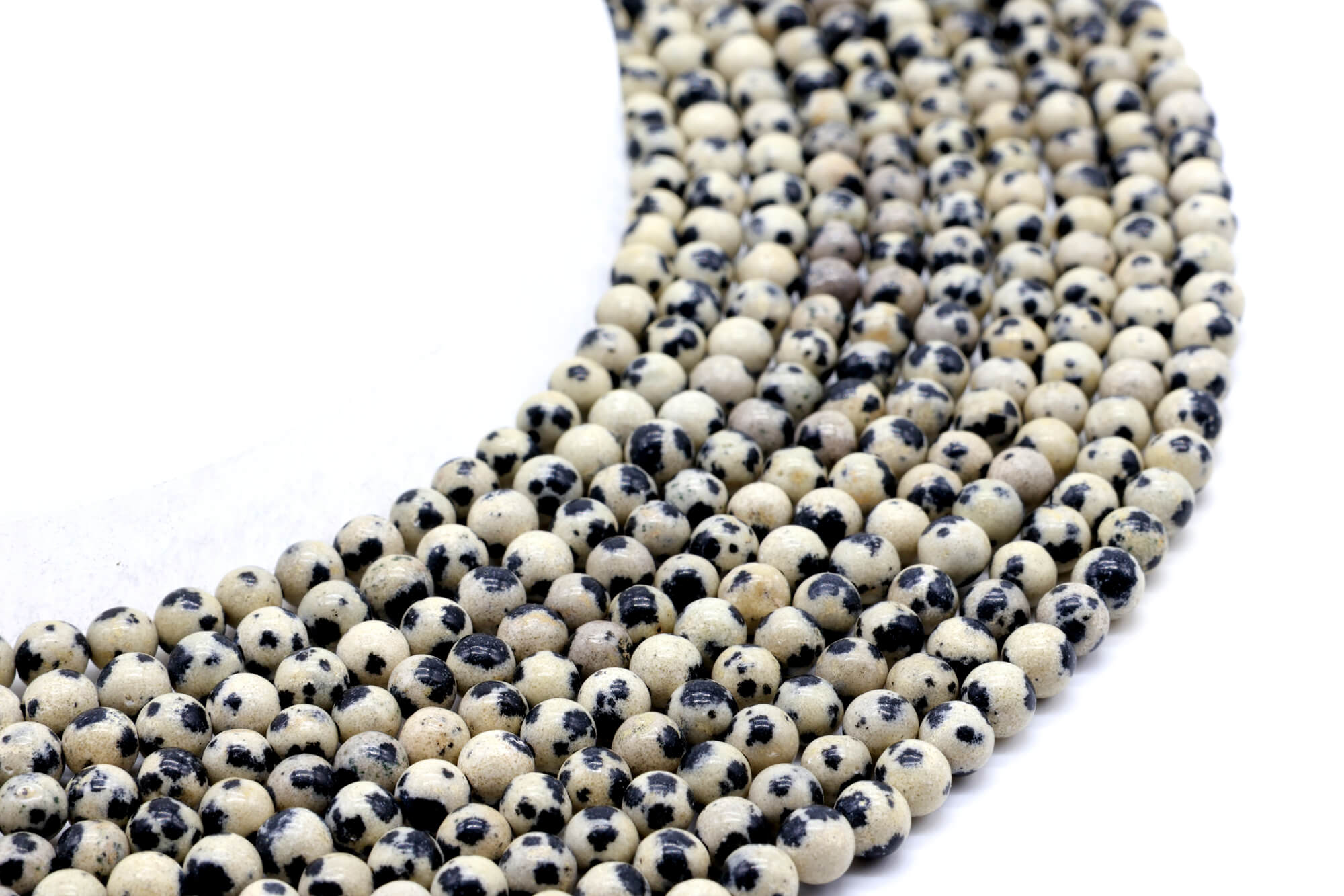 Perle di diaspro dalmata da 4 mm su un filo di 40 cm