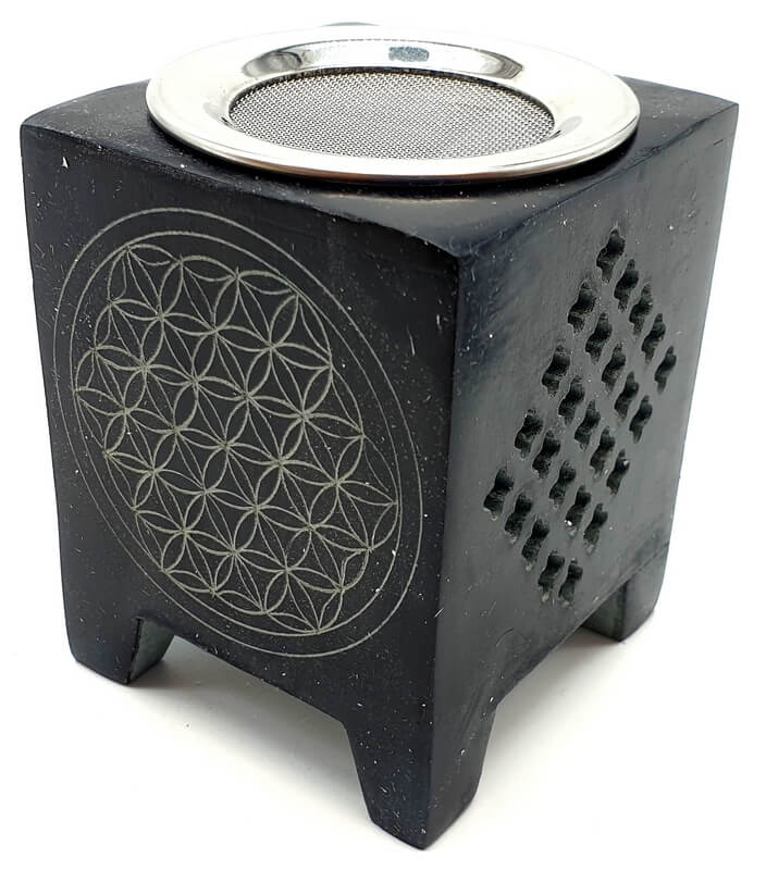 Bruciatore con griglia per incenso in grani e coppa per olio da bruciare.