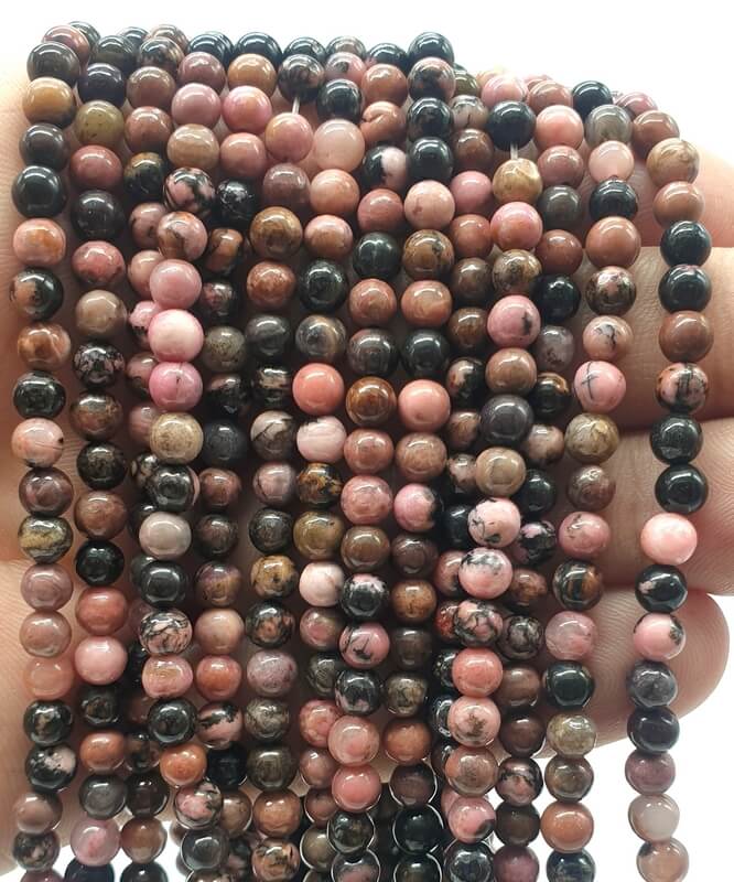 Perles 'Black Line' Rodonite 4mm su fil 40cm