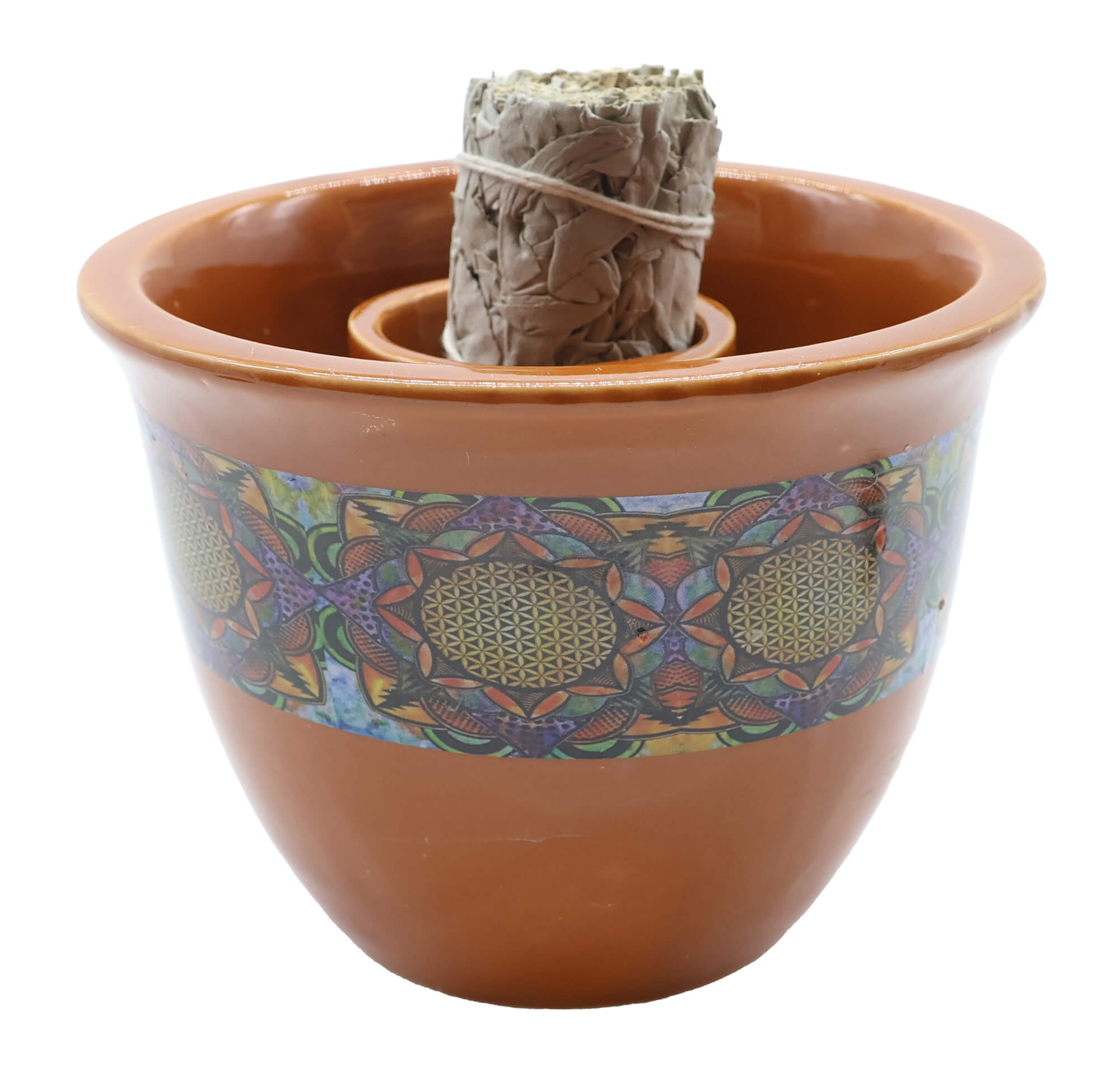 Ciotola per fumigazione in ceramica Fiore della Vita 13 cm