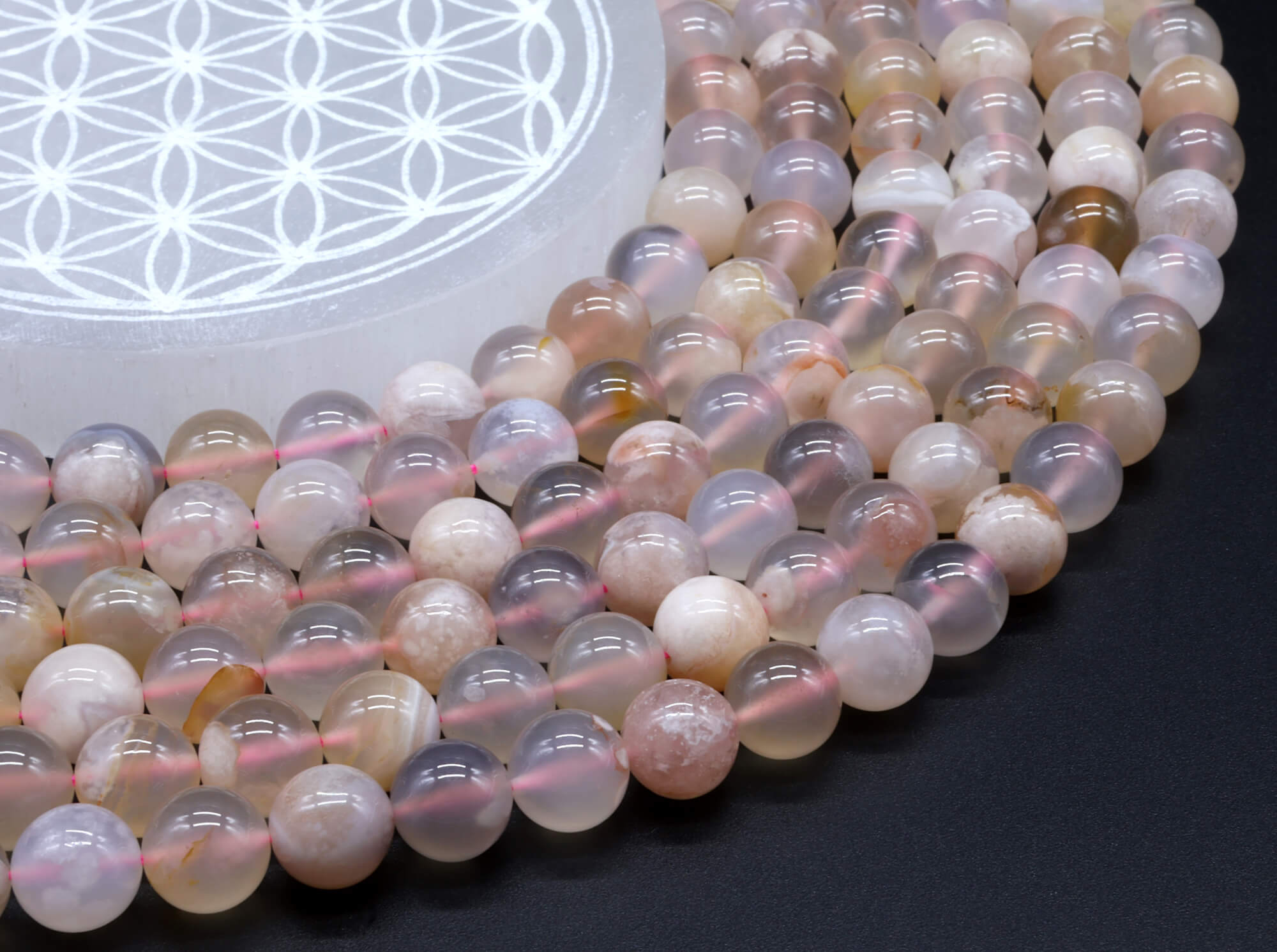 Perline di agata ciliegia da 10 mm su filo da 40 cm