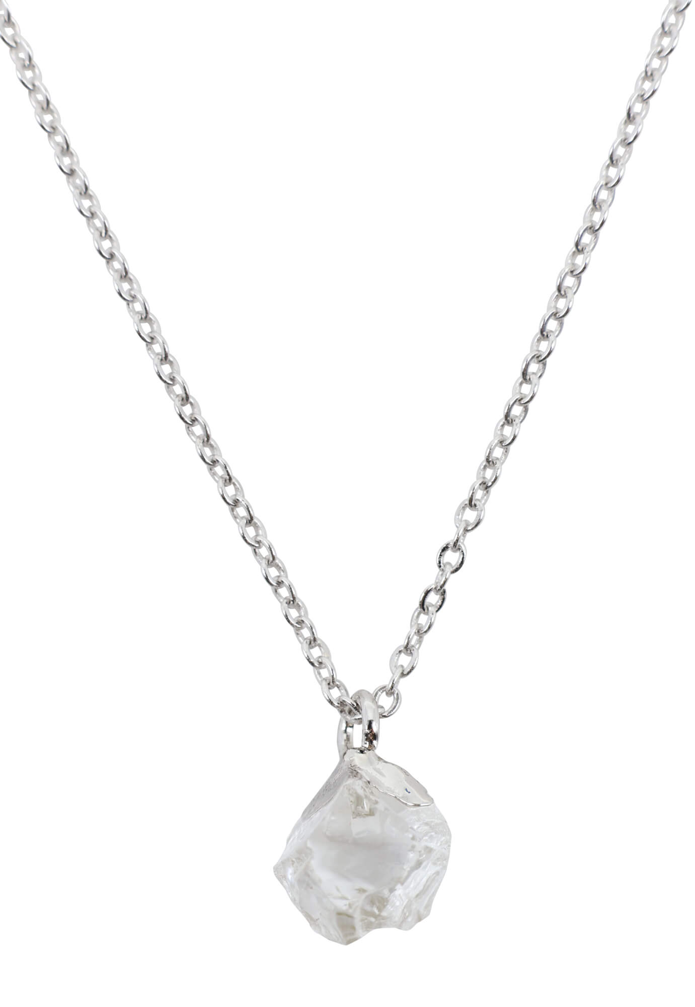 Collana in argento Sterling 925 placcata in platino, con incastonata una pietra grezza di qualità extra.