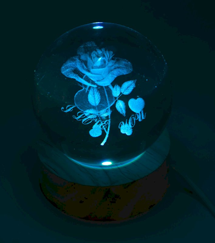 Luce notturna d'atmosfera con luce cangiante incisa all'interno. Connessione USB