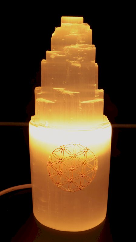 Lampada con incisione montagna in selenite 20 cm - Fiore della vita