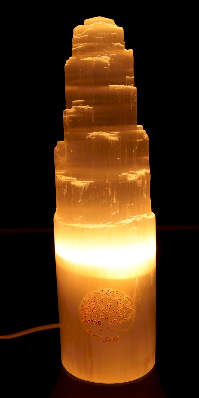 Lampada con incisione montagna in selenite 30 cm - Albero della vita