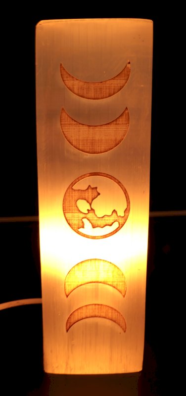 Lampada rettangolare in selenite incisa 25 cm - Quadrante lunare