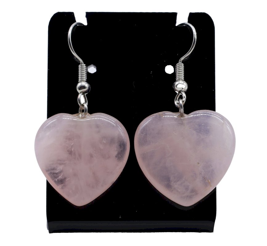 Orecchini a cuore in quarzo rosa da 4 cm