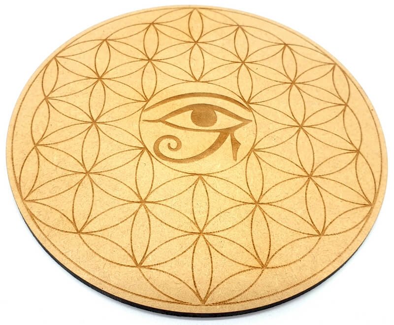 Targa in legno Occhio di Horus Fiore della Vita 30cm